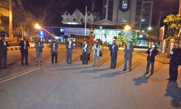 “Dampak atau pengaruh dari covid-19 ini sangat besar, sehingga mempengaruhi perekonomian, di Kota ini, bahkan membuat masyarakat panik dan menderita, oleh sebab itu sebagai hamba Tuhan, wajib mendoakan kota ini,”jelas Pdt. Carlos Mano.
