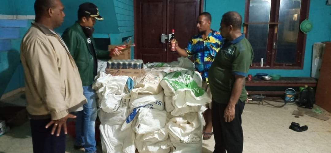 Wakil Bupati Boven Digoel, Chaerul Anwar,ST saat melihat barang bukti ratusan minum keras yang disita dari salah satu warga, Kamis (9/4) malam. Padahal saat ini Pemprov Papua tengah memberlakukan pembatasan sosial untuk mencagah wabah Covid-19. (Istimewa)