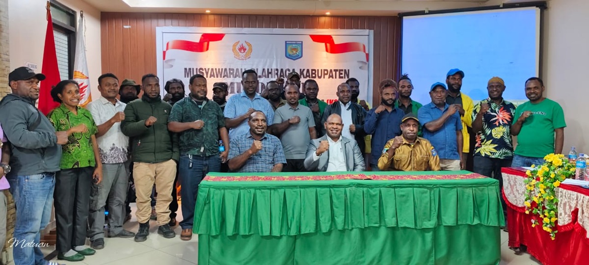 WAMENA-Piter Togodly terpilih sebagai ketua Komite Olahraga Nasional Indonesia (KONI) Kabupaten Mamberamo Tengah (Mamteng) periode 2025-2030 secara aklamasi pada musyawarah olahraga kabupaten (Musorkab) yang digelar di Wamena pada Jumat (27/6) 2025.