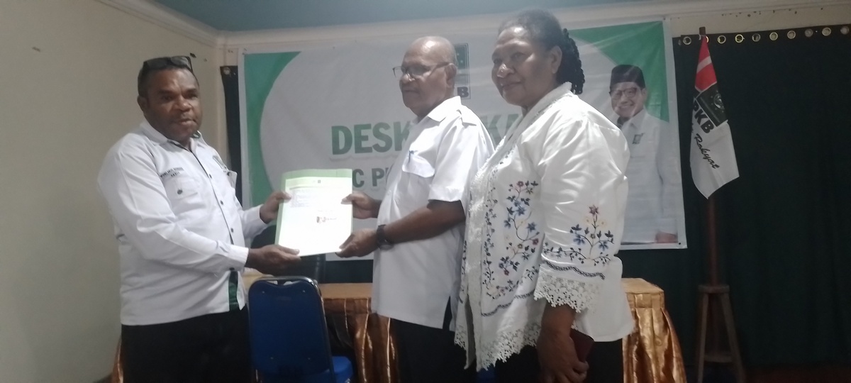 “Jadi, hari ini saya datang ke PKB bukan mengambil formulir pendaftaran, tetapi, saya menyerahkan langsung formulir dan persyaratan pendaftaran karena saya sudah mengisi secara online pada saat PKB membuka pendaftaran,” ujar pria yang pernah menjabat sebagai Kepala Dinas Pendidikan Kabupaten Jayapura ini.