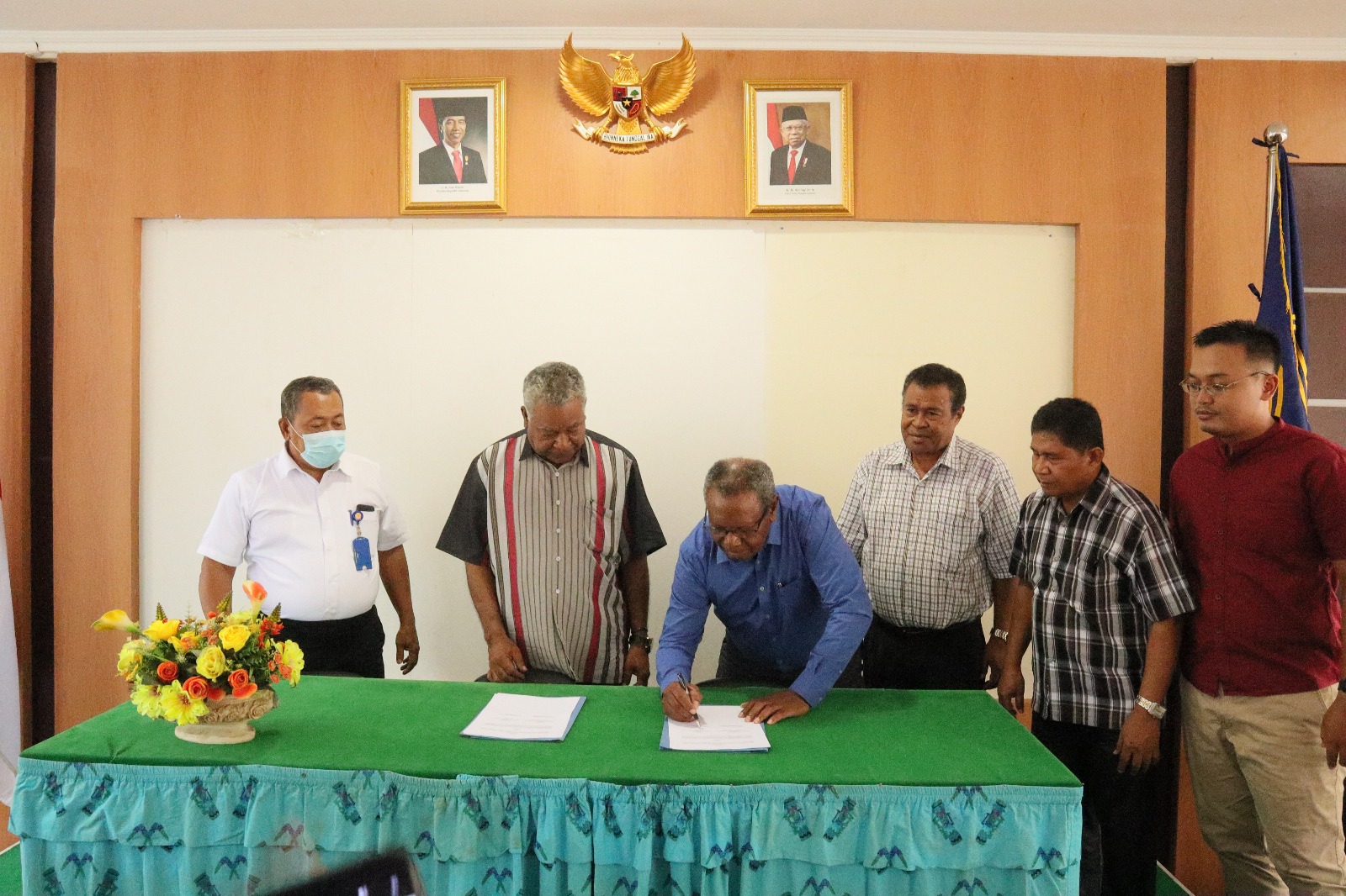 Ketua AMPP Benyamin Jensenem saat memberikan sambutan sebelum penandatanganan MoU.
