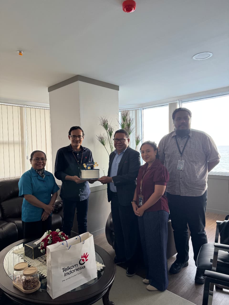 Rombongan Telkom disambut hangat oleh Ketua Sinode, Pdt. Hendrikus Mofu. Dalam pertemuan itu, keduanya berdialog mengenai pentingnya layanan komunikasi yang andal untuk mendukung pelayanan gereja dan masyarakat.