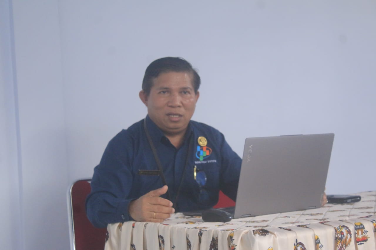 Kepala BPS Kabupaten Jayawijaya Arther L Purmiasa ketika memberikan keterangan terkait angka infkasi pada Februari 2025 di kantornya pada Senin.