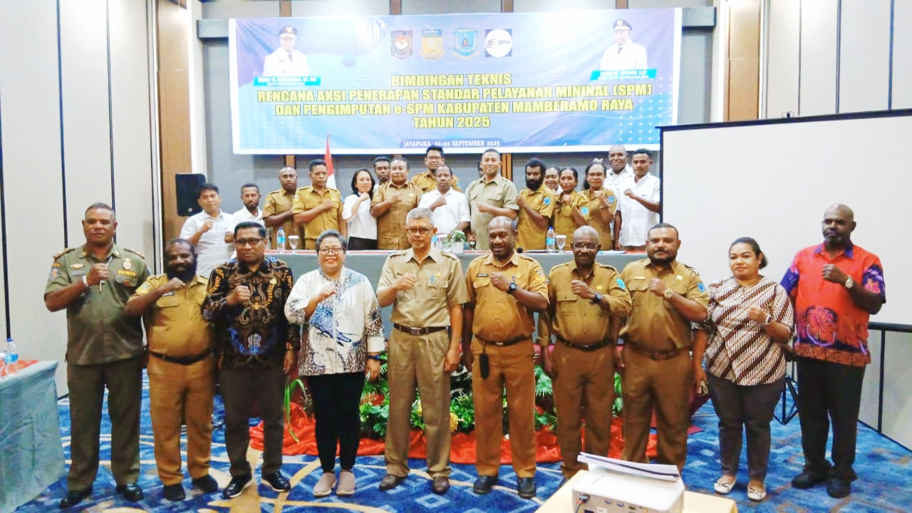 JAYAPURA – Pemerintah Kabupaten (Pemkab) Mamberamo Raya menekankan pentingnya penerapan Standar Pelayanan Minimal (SPM) dalam meningkatkan kualitas pelayanan dasar kepada masyarakat. Hal ini disampaikan Bupati Mamberamo Raya Robby W. Rumansara, SP., MH melalui sambutan yang dibacakan Asisten II Setda, Drs. Sukarno, saat membuka Bimbingan Teknis (Bimtek) Rencana Aksi Penerapan SPM dan Penginputan E-SPM di Jayapura, Senin (1/9).