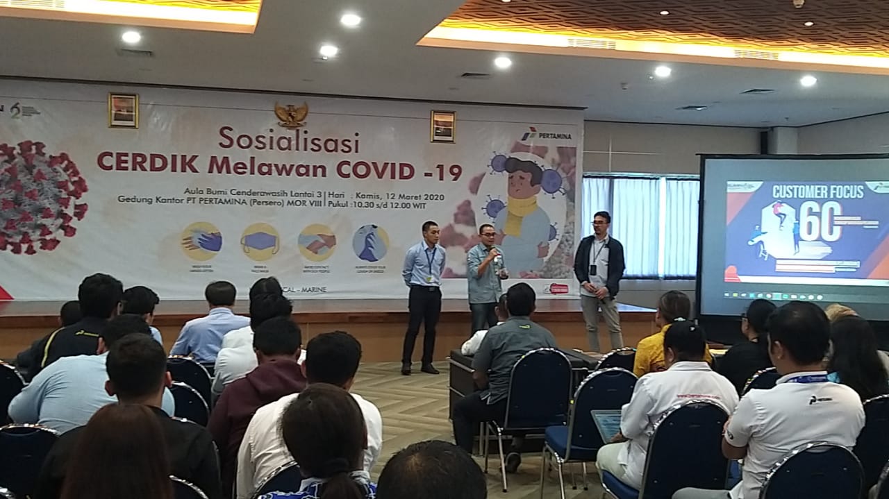 JAYAPURA – Guna meningkatkan kewaspadaan penyebaran COVID-19 di lingkungan Pertamina Maluku Papua. Pertamina menggelar healthy talk dengan tema Cerdik Melawan Coronavirus (COVID – 19) sebagai bentuk edukasi pencegahan penyebaran wabah COVID-19, Kamis (12/03) di Kantor Unit Pertamina Marketing Operation Region VIII Jayapura.