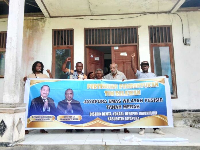 Pernyataan dukungan secara resmi disampaikan saat dikunjungi oleh Ketua Relawan Jayapura Emas Wilayah Tanah Merah Herman Nerotouw dalam rangka pertemuan pembentukan tim relawan dan posko Jayapura Emas Distrik Demta, Kabupaten Jayapura, baru-baru ini.