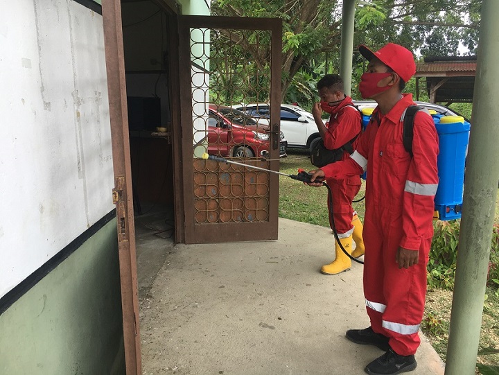 “Jadi ini bentuk (penyemprotan cairan disinfektan dan pembagian APD,red) untuk memutus penyebaran Covid-19. Ini yang dapat kami lakukan, kalau mengobati kami tidak bisa,” paparnya.
