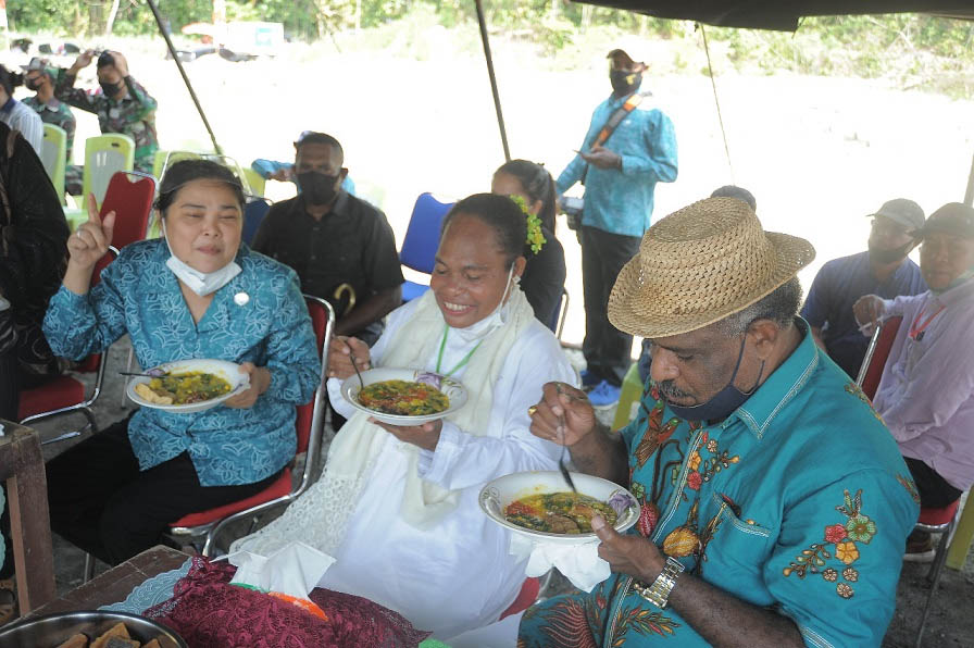 Ketua DPRD Kota Jayapura, Abisay Rollo didampingi Istri saat makan siang bersama Istri Wakil Gubernur Papua, Ny Yolanda Tinal di sela-sela Festival Tinutuan di Pantai ABR Beach, Rabu (9/9). (Gerrard/Bintang Papua Online)