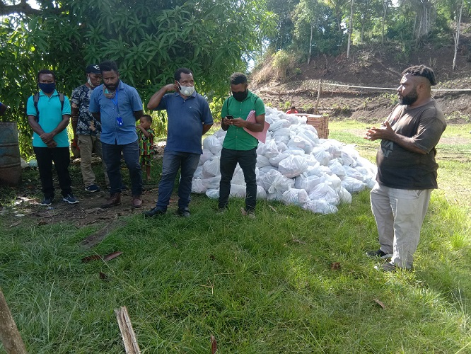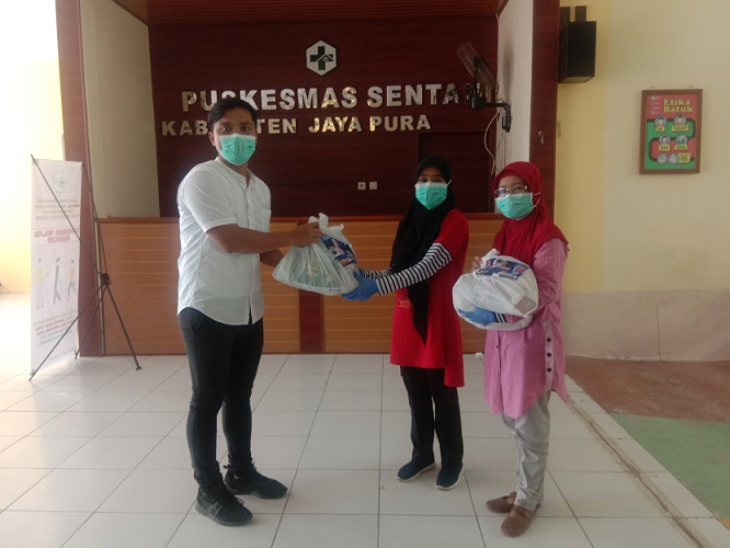 Penyerahan bantuan paket bama secara simbolis di Puskesmas Sentani