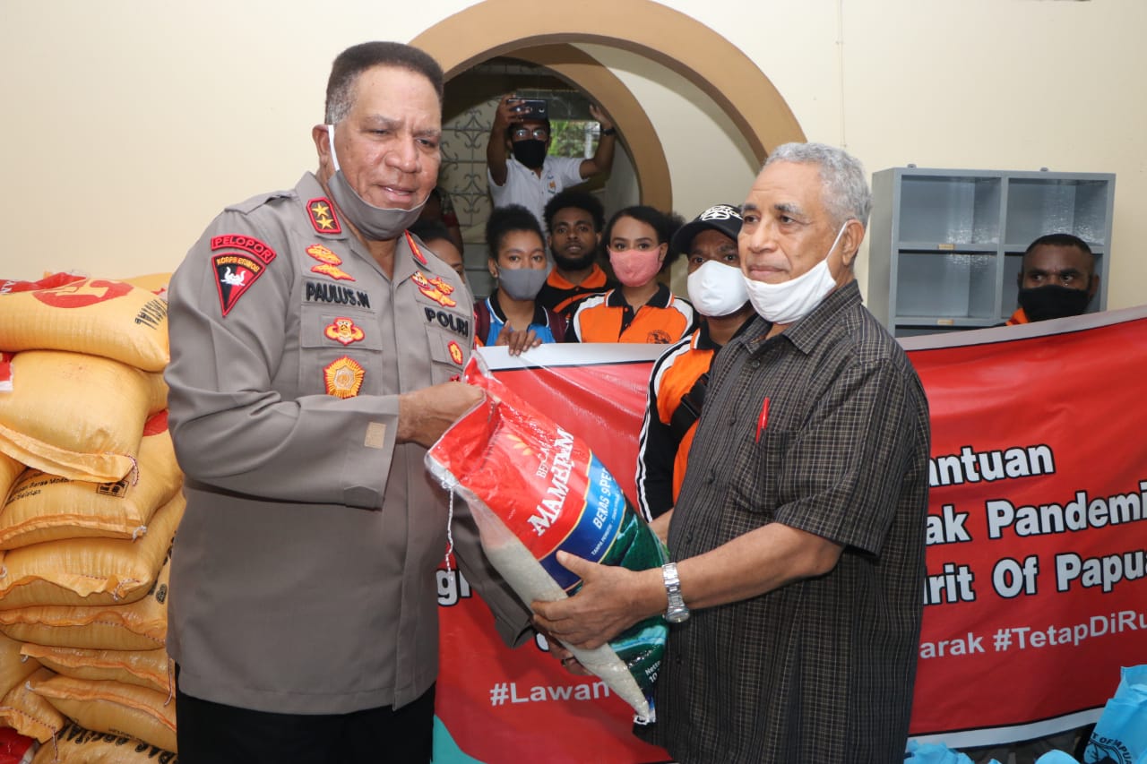 JAYAPURA – Kapolda Papua Irjen Pol Paulus Waterpauw bersama Posko The Spirit of Papua tak hentinya menyalurkan bantuan berupa Sembako kepada masyarakat, sejak merebaknya Covid-19 di Papua.