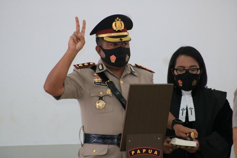 Pengukuhan Jabatan Kapolresta Jayapura Kota berdasarkan Surat Telegram Kapolri nomor: ST/2249/VIII/Kep/2020 tanggal 3 Agustus 2020.