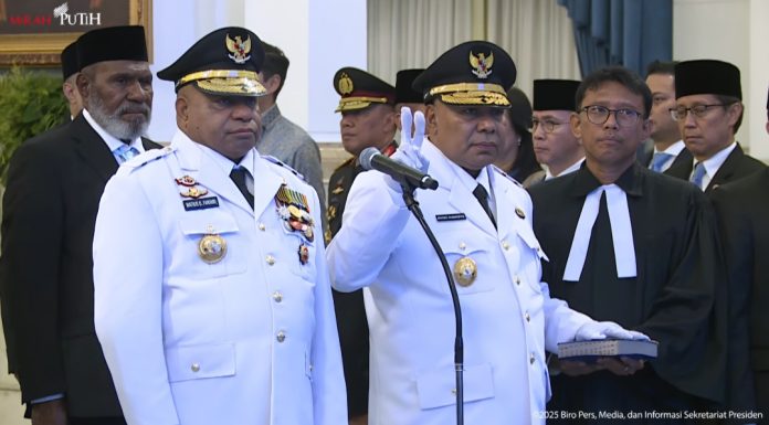 JAKARTA — Presiden Republik Indonesia Prabowo Subianto resmi melantik Mathius D. Fakhiri dan Aryoko Rumaropen sebagai Gubernur dan Wakil Gubernur Papua periode 2025–2030, dalam upacara yang berlangsung khidmat di Istana Negara, Jakarta, Rabu (8/10/2025).