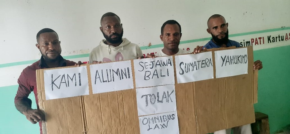 “Undang-undang yang DPR RI bahas ini akan membuat masyarakat sulit, ketika negara tersebut masuk interfensi dengan berbagai perusahaan yang akan masuk ke Papua membuat kami orang Papua akan tersingkirkan. (Sehingga) kami tidak mau tuan rumah jadi tamu di negerinya sendiri. Kami seluruh Alumni Jabasu menolak dengan tegas Omnibus Law yang telah disahkan ini,” tegas passe.