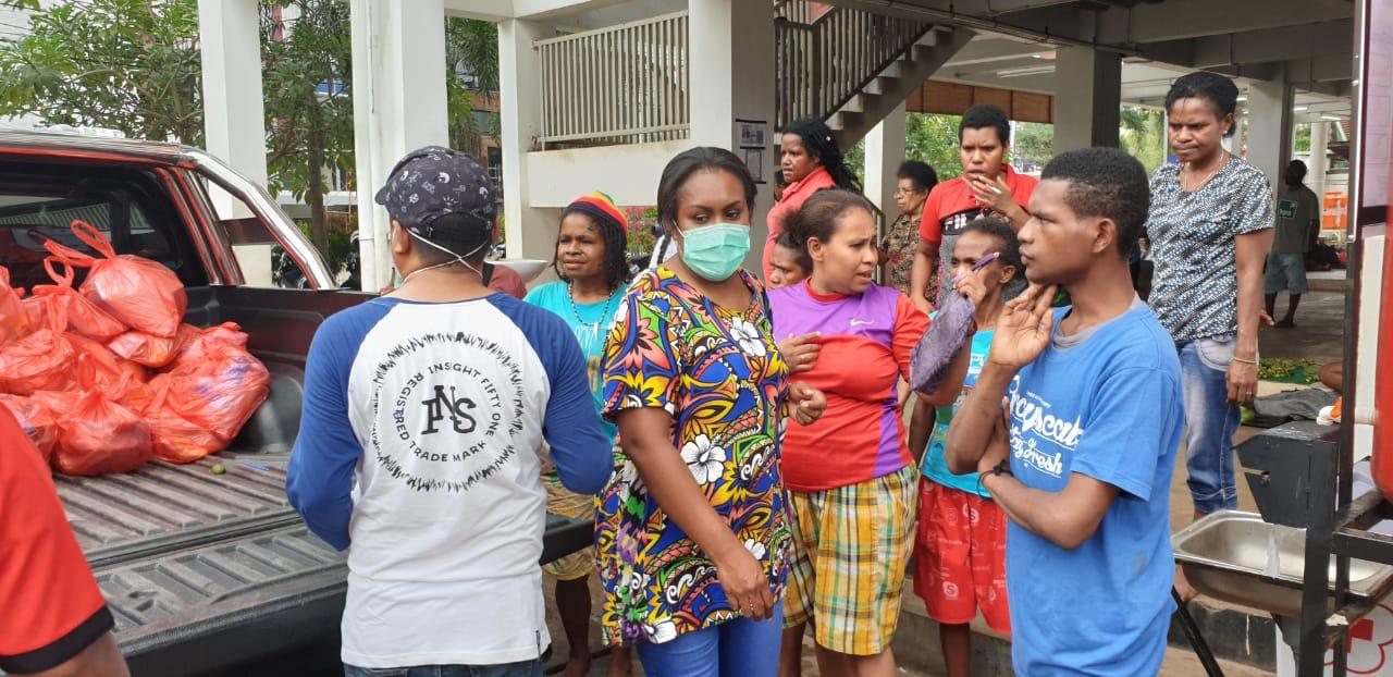 “Kita bagikan di titik pertama yaitu Pasar Mama – Mama Papua, titik kedua kita bagi ke pedagang kaki lima selama dalam perjalanan pembagian sembako,” ujarnya.