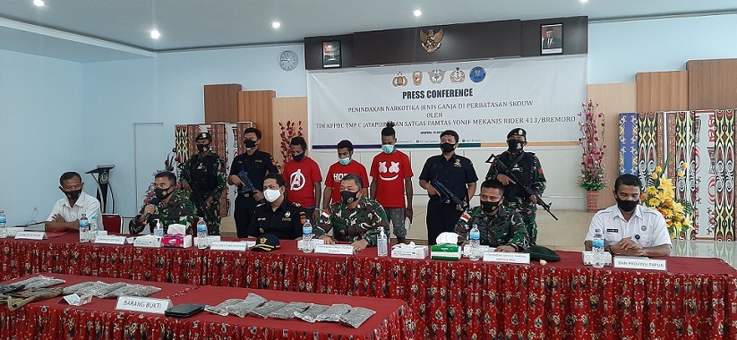 JAYAPURA-Tim Gabungan Penindakan yang terdiri dari P2 Bea Cukai Jayapura dan Satgas Pamtas Yonif Mekanis Raider 413/BM berhasil menggagalkan penyelundupan narkotika jenis ganja seberat 1 kg dari Papua New Guinea (PNG).