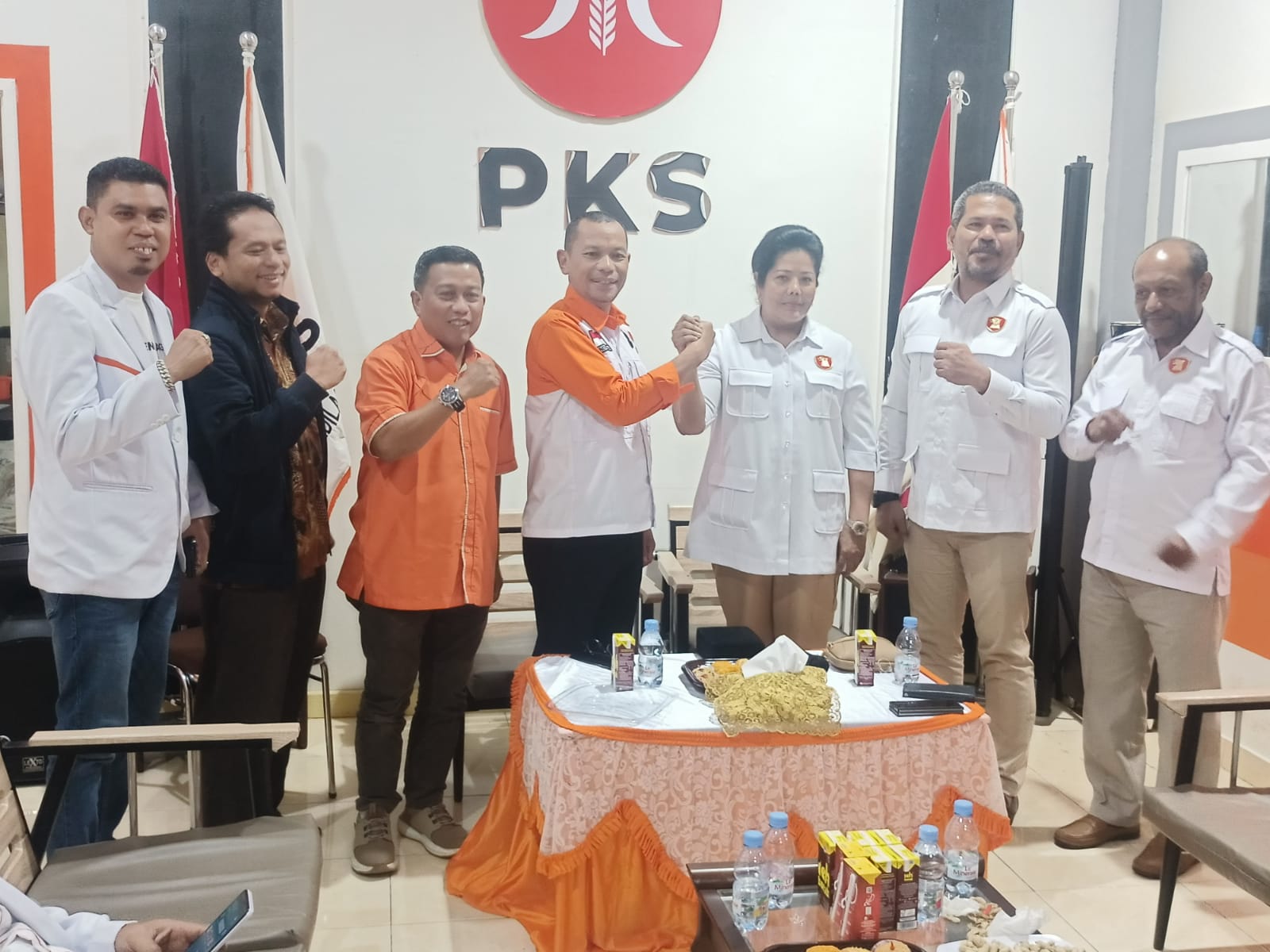 Kedatangan rombongan Partai Gerindra disambut hangat Ketua DPW PKS Papua Suherman.