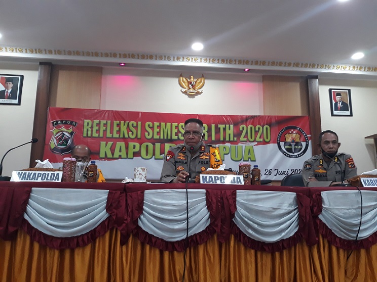 Kapolda Papua Irjen Pol Paulus Waterpauw dalam pemaparan laporan kinerja Semester 1 di Kota Jayapura. (Tambunan/Bintang Papua Online)