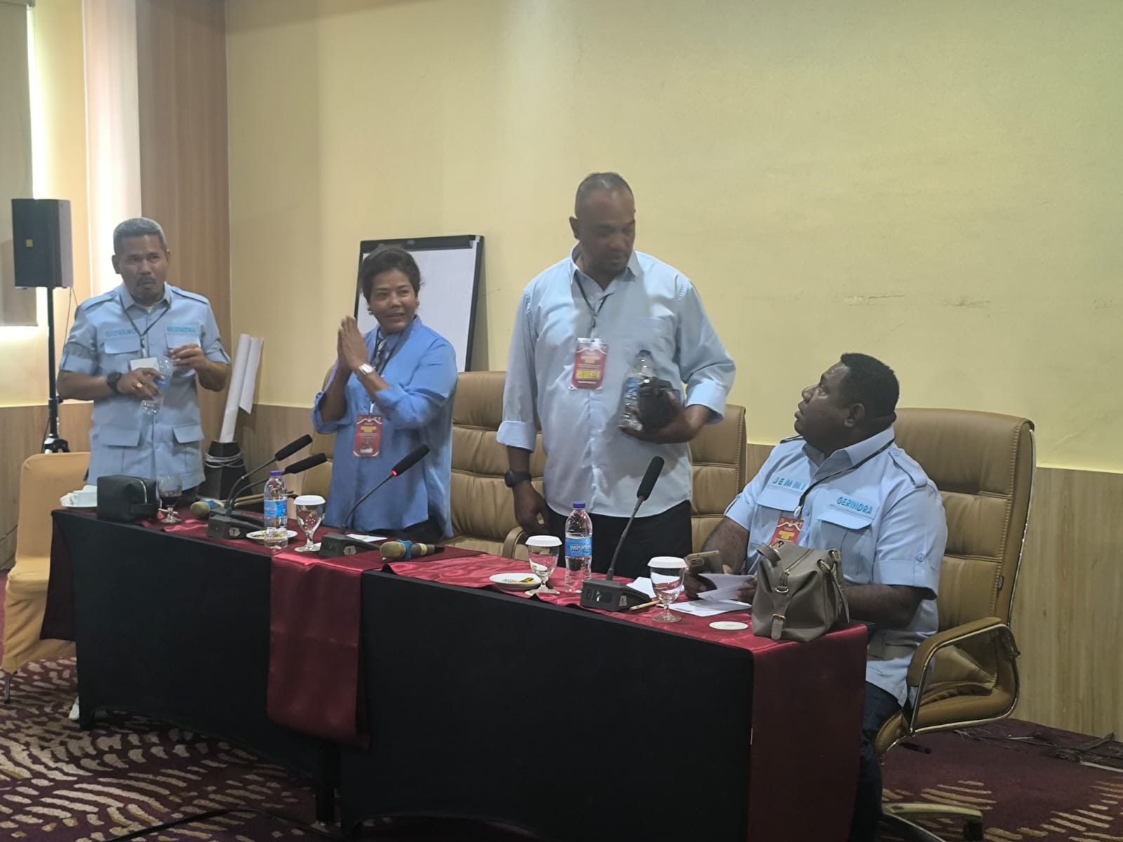 JAYAPURA – Jelang debat kedua Pilkada Sarmi, pasangan nomor urut 2 Yanni-Jemmi terlihat bersama para pendukungnya yang bersiap mengikuti debat.