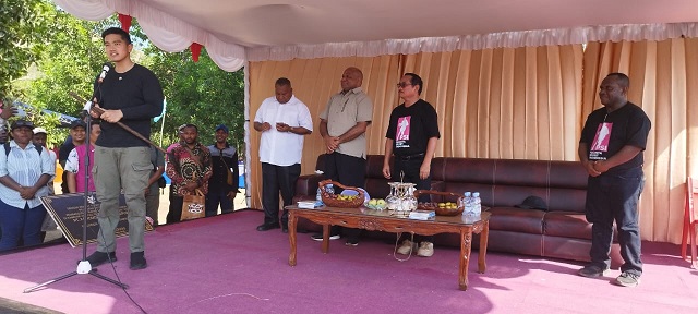 SENTANI, Ketua Umum DPP Partai Solidaritas Indonesia (PSI) Kaesang Pangarep turun langsung dalam kampanye tatap muka pasangan calon Bupati dan Wakil Bupati Jayapura nomor urut 4, Yohannis Manangsang Wally – Daniel Mebri, di Bukit Formokho, Kampung Nendali, Distrik Sentani Timur, Kabupaten Jayapura, Papua, Jumat, 22 November 2024.