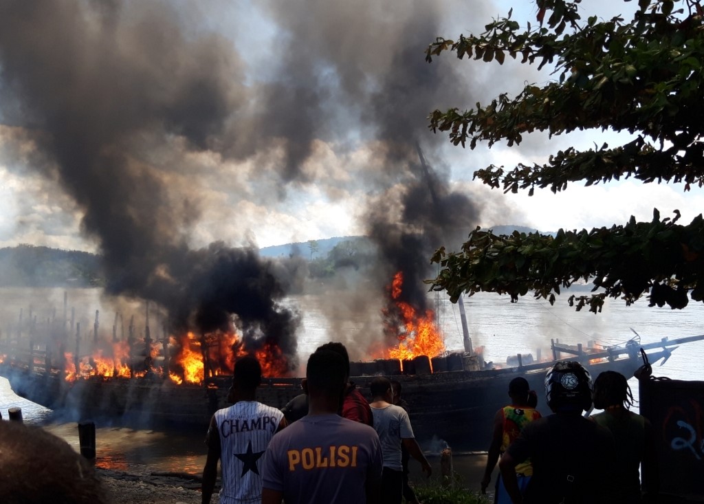 Dia menjelaskan, kapal tak tertolong lagi lantaran seisinya terbakar. Sementara api masih menyala dari bagian palka kapal yang berisikan BBM, hingga pukul 13.50 WIT.