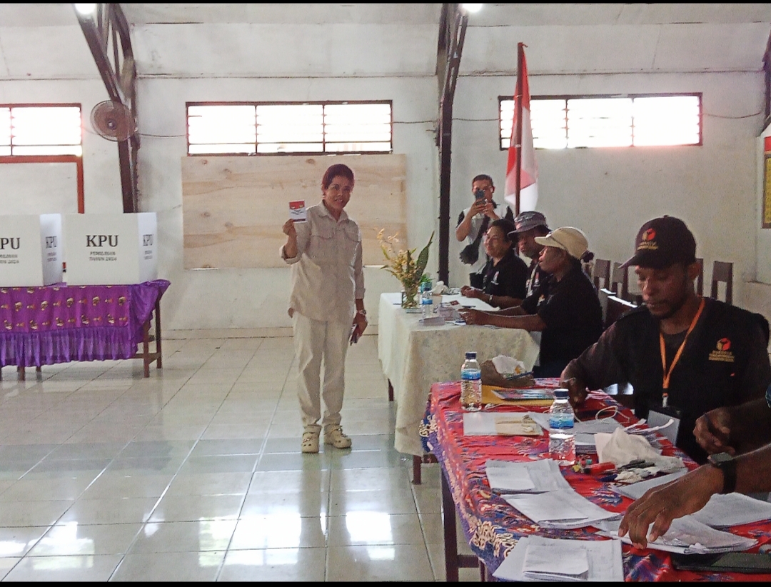 SARMI – Ketua DPD Gerindra Papua Yanni, Rabu (06/8) pukul 10.45 menggunakan hak pilihnya di TPS 01 Sarmi kota, Kabupaten Sarmi.