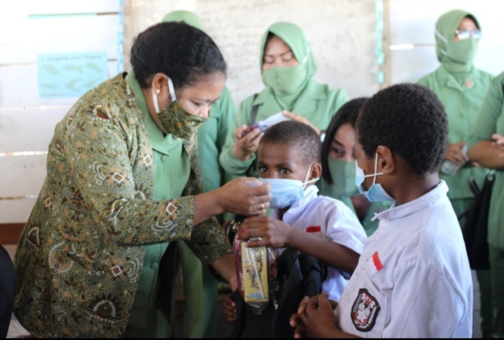 Terkait dengan itu, Ketua Persatuan Istri Tentara (Persit) Kartika Chandra Kirana (KCK) Cabang XIV Kodim 1715/ Yahukimo Ibu Paulina Ireeuw didampingi Ibu Kasdim serta pengurus Persit membagikan masker pelindung mulut dan hidung di beberapa Sekola Dasar antara lain SD Advent dan SD Moroku Distrik Dekai Kabupaten Yahukimo Selasa,(23/3).