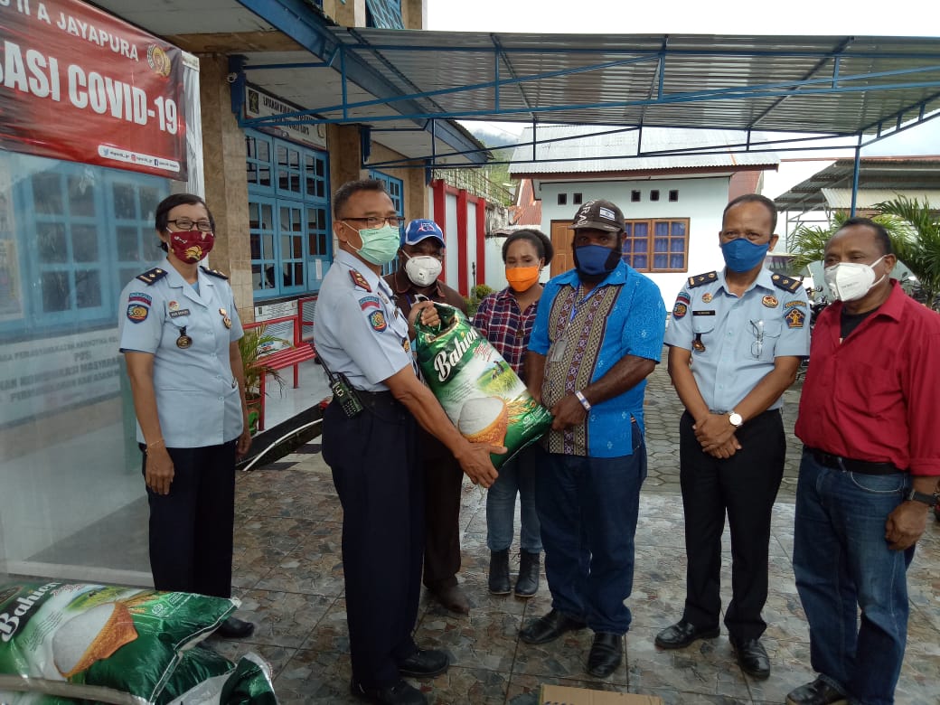 JAYAPURA-Bentuk perhatian terhadap masyarakat di tengah mewabahnya virus Corona (Covid-19), Komisi I Dewan Perwakilan Rakyat Papua memberikan bantuan Bahan Makanan (Bama) untuk Lembaga Pemasyarakatan (Lapas) Narkotika Kelas II A Doyo, Kabupaten Jayapura, Kamis (29/4).