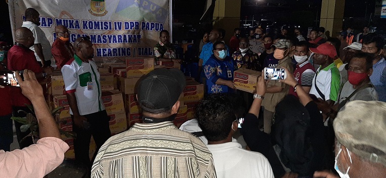 JAYAPURA-Mewabahnya virus Corona di Tanah Papua, membuat Pemerintah Provinsi (Pemprov) Papua mengambil langkah menutup akses penerbangan penumpang sejak Maret hingga sekarang. Akibat dari penutupan akses penerbangan penumpang itu, ratusan porter di Bandara Sentani harus kehilangan pekerjaannya. Sehingga berdampak pada kehidupan sehari-hari mereka. Oleh sebab itu, untuk mengurangi beban penderitaan para porter di Bandara Sentani, Komisi IV Dewan Perwakilan Rakyat Papua memberikan bantuan berupa 150 paket bahan makanan (Bama) ke porter Bandara Sentani.