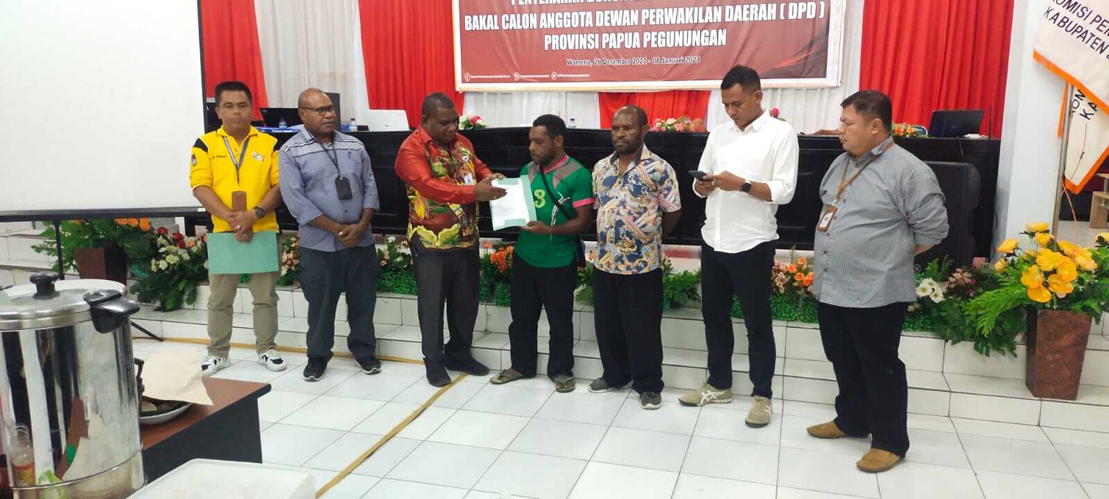 JAYAPURA- Anggota Komisi V DPR RI, Fraksi PAN Dapil Papua Mesakh Mirin, mendaftar menjadi bakal calon anggota DPD RI Papua Pegunungan.