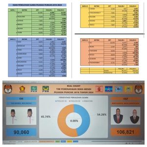 JAYAPURA – Pasangan calon bupati dan calon wakil bupati Puncak Jaya nomor urut 02, Miren Kogoya dan Mendi Wonerengga (Miko – Mendi) mengklaim unggul di pilkada Puncak Jaya 2024. Dengan perolehan suara 56,26 persen atau 106.821 suara, sementara rivalnya paslon nomor urut 01 Yuni Wonda – Mus Kogoya meraih suara 45,74 persen atau 90.060 suara.