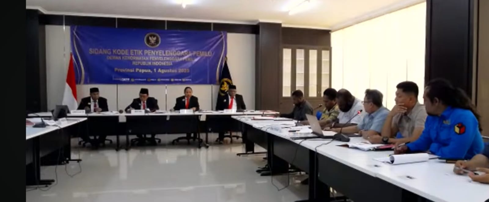 Sidang ini dipimpin Majelis DKPP, I Dewa Kade Wiarsa Raka Sandi (Ketua Majelis/Anggota DKPP) Maximus Leonardus Nemo (Anggota Majelis/TPD Prov. Papua unsur masyarakat), Yohanes Fajar Irianto Kambon (Anggota Majelis/TPD Prov. Papua unsur KPU) dan Yofrey P. Kebelen (Anggota Majelis/TPD Prov. Papua unsur Bawaslu).