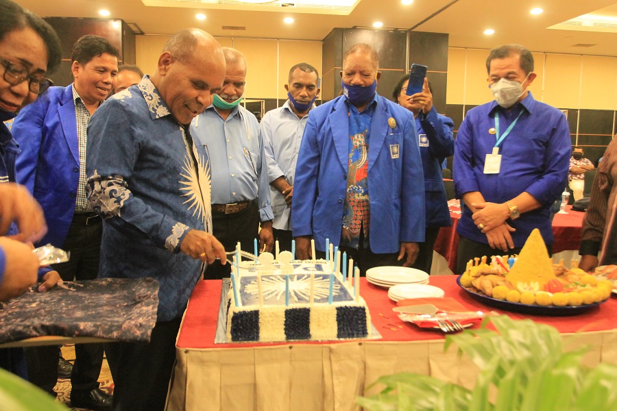 JAYAPURA-Hari jadi ke-22 Partai Amanat Nasional (PAN) Wilayah Papua digelar dengan menerapkan protokoler kesehatan Covid-19 di salah satu hotel di Kota Jayapura, Minggu (23/8) sore. Perayaan berlangsung sederhana, namun hikmad.