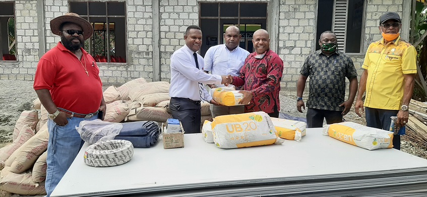 Usai penyerahan bantuan, Thomas Sondegau mengatakan, adapun bantuan yang pihaknya berikan berupa 100 sak semen, 70 lembar gipsum, kabel dan juga paku.