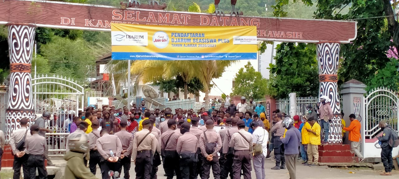 Aksi demo bertujuan mendesak pemerintah agar membebaskan tanpa syarat tujuh terdakwa Makar dalam kerusuhan akibat rentetan rasisme yang terjadi pada Agustus 2019 lalu.