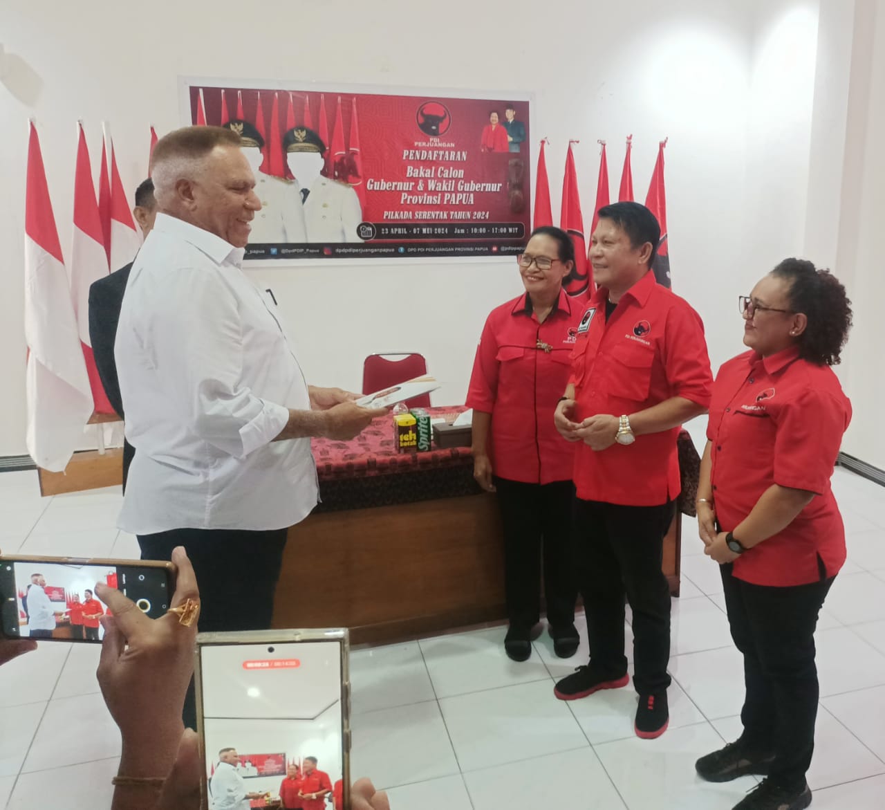 Ketua Tim Penjaringan Bakal Calon Gubernur dan Wakil Gubernur DPD PDI Perjuangan Provinsi Papua, Danny D Tamboto mengapresiasi Komjen Pol (Purn) Paulus Waterpauw yang datang mengembalikan berkas pendaftaran bakal calon Gubernur Papua.