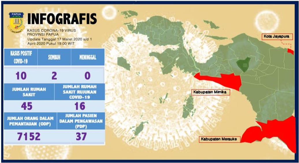 “Untuk pasien positif Covid-19 belum ada penambahan masih tetap 10 Orang, sedangkan yang dinyatakan sembuh 2 orang, dan belum ada yang meninggal, ” kata Juru Bicara Satuan Tugas (Satgas) Covid-19 Papua, dr. Silwanus Sumule.