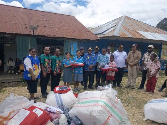 INTAN JAYA — Pemerintah Kabupaten Intan Jaya melalui Dinas Sosial, Kamis (09/04), menyalurkan bantuan perlengkapan sekolah kepada siswa tingkat SD, SMP, hingga SMA di sejumlah wilayah yang membutuhkan.