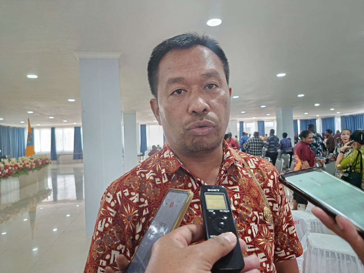 Plt Kepala BPKAD Kabupaten Jayawijaya Estepanus Lolo Kassa ketika diwawancarai sejumah wartawan di Wamena