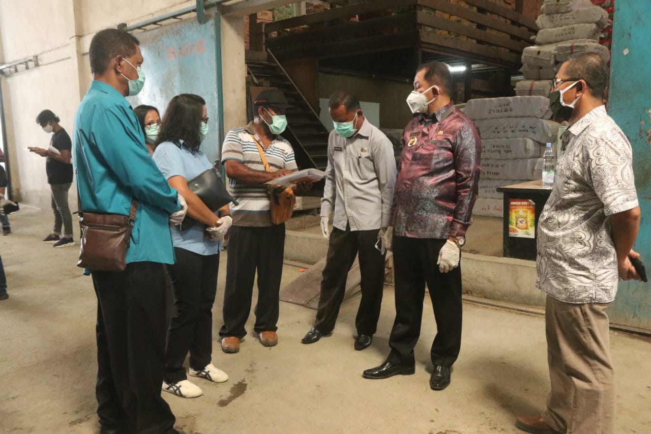 JAYAPURA-Ketua Gugus Tugas Penanganan covid 19 kota Jayapura, Ir. H. Rustan Saru, MM, melakukan pengecekan di lokasi gudang tempat penyimpanan sembako Pemkot Jayapura yang dikeloka Dinas Sosial.