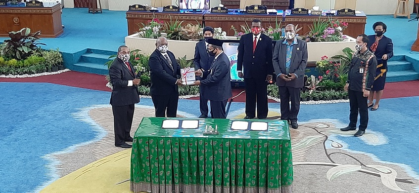 “Alhamdulillah, setelah dua bulan kami melakukan pemeriksaan LKPD Pemprov Papua tahun anggaran 2019, meskipun terlambat dikarenakan pembatasan akibat pandemi Covid-19. Pada hari ini laporan hasil atas laporan keuangan Pemprov Papua tahun 2019 dapat kami serahkan ke DPR Papua dan Gubernur Papua,” kata Prof Harry Azhar saat memberikan sambutan secara virtual dalam rapat paripurna LHP, Jumat (26/6).