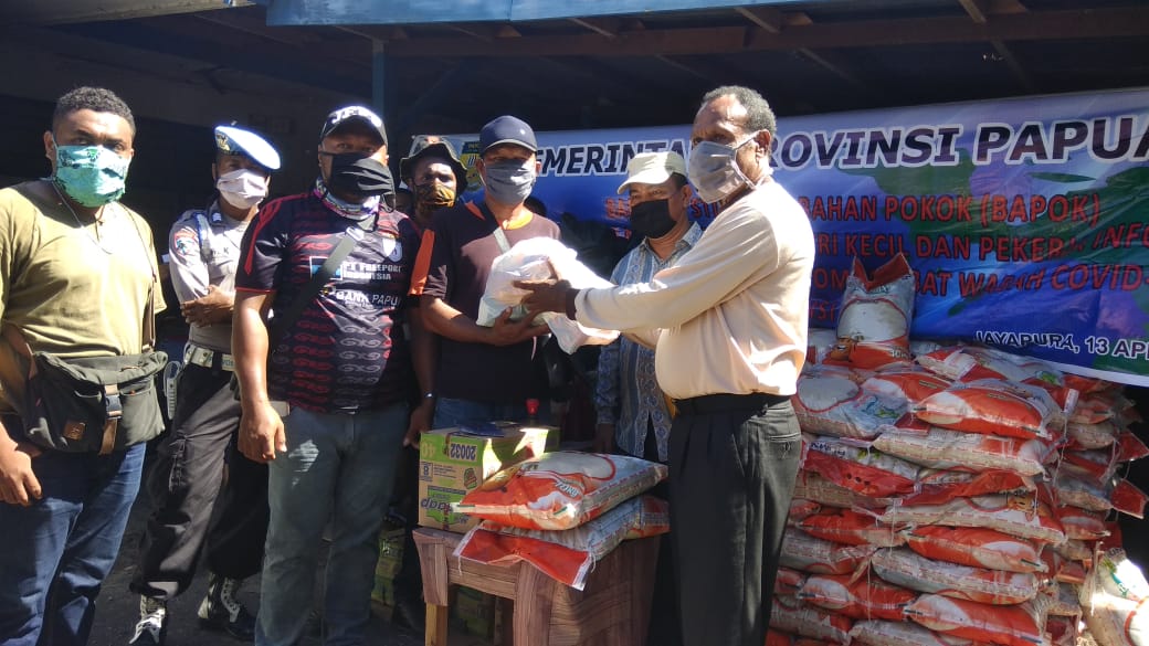 JAYAPURA – Sebanyak 3.000 paket bahan pokok (bapok) dan 6.000 lembar masker telah disalurkan Pemerintah Provinsi Papua melalui Sub Tim Pengelola Dampak Ekonomi Covid-19 Provinsi Papua, menyalurkan bantuan berupa bahan pokok (bapok) kepada masyarakat yang terdampak coronavirus disease 2019 (Covid-19) di Kota Jayapura.