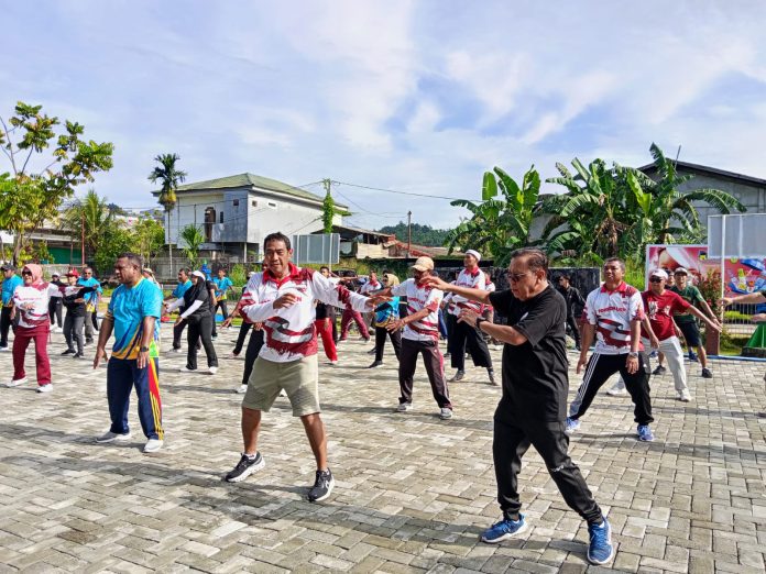 JAYAPURA – Dalam upaya mempererat tali silaturahmi sekaligus menjaga kebugaran, Forum Komunikasi Lintas Kerukunan Nusantara (FORKOM-LKN) Papua menggelar senam sehat bersama di halaman Kantor PDAM Jayapura, Sabtu (25/10).
