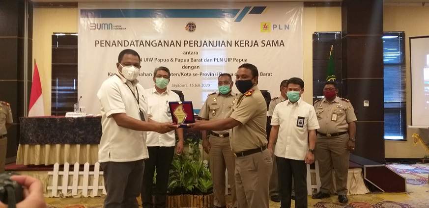 JAYAPURA-Manajemen PT PLN Papua dan Papua Barat menandatangani kerja sama dengan 12 Badan Pertanahan Nasional (BPN) Kabupaten/Kota se-Provinsi Papua terkait dengan lahan aset PLN (ketenagalistrikan) di Papua, Rabu (15/7).