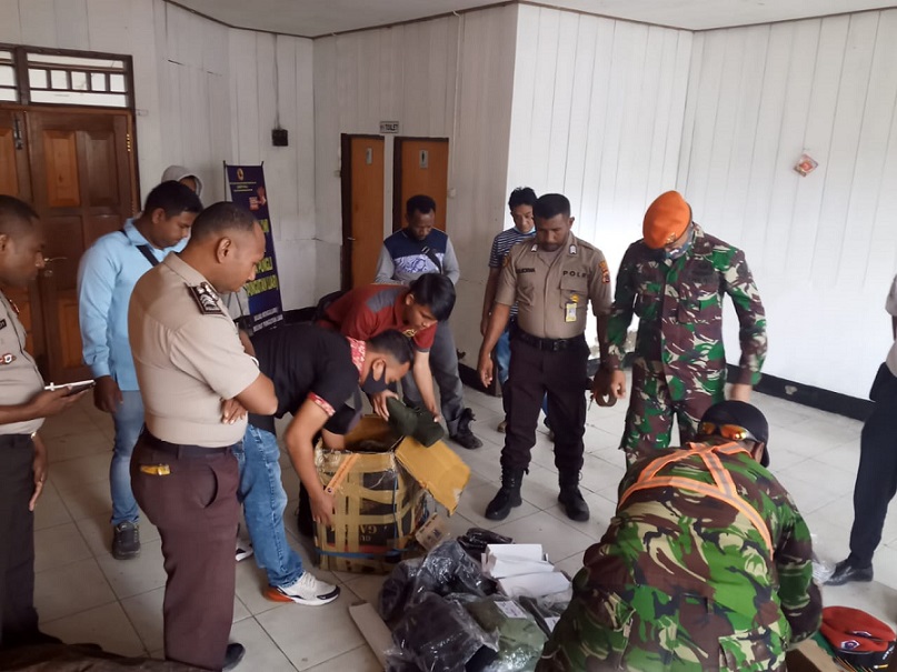 Informasi yang dihimpun Bintang Papua Online, kiriman barang yang disita polisi dari Bandara Oksibil antaralain 8 bilah pisau Sangkur buatan Pindad, 8 baret hijau, 2 baret merah bertuliskan Satuan Warsi 3721, 8 stel seragam PDL warna kopi, 4 stel seragam PDL Satpam warna hitam.