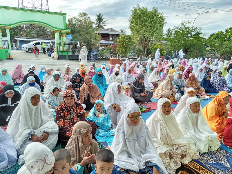 KEEROM-Ratusan umat muslim di Kampung Sanggaria, Arso I, Distrik Arso Barat, Keerom mengikuti pelaksanaan salat idul fitri 1443 Hijriah tahun 2022 di Masjid Fiisabilillah, Senin (2/5).