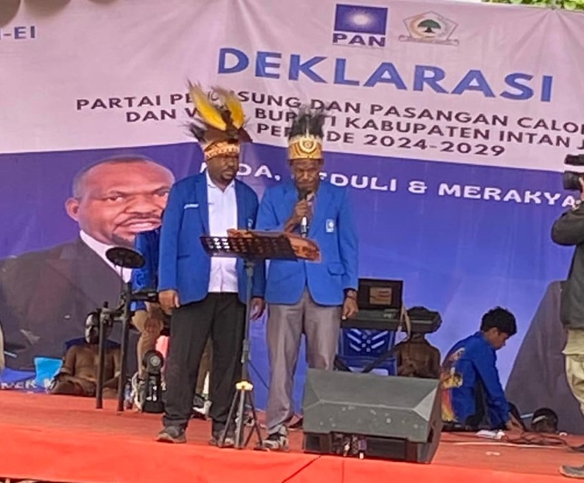 Pasangan Calon Bupati dan Wakil Bupati Intan Jaya, Aner Maisini – Elias Igapa (AM-EI), Selasa (20/08) mendeklarasikan diri maju di Pilkada Intan Jaya 2024.