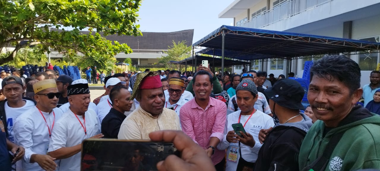 SENTANI-Warga Sulawesi Selatan dan Komunitas Warga Nusantara menggelar acara silaturrahmi dengan Bakal Calon Gubernur dan Wakil Gubernur Provinsi Papua dari pasangan Mari-Yo (Mathius Derek Fakhiri-Aryoko Rumaropen) pada Jumat (20/9) 2024 September 2024.
