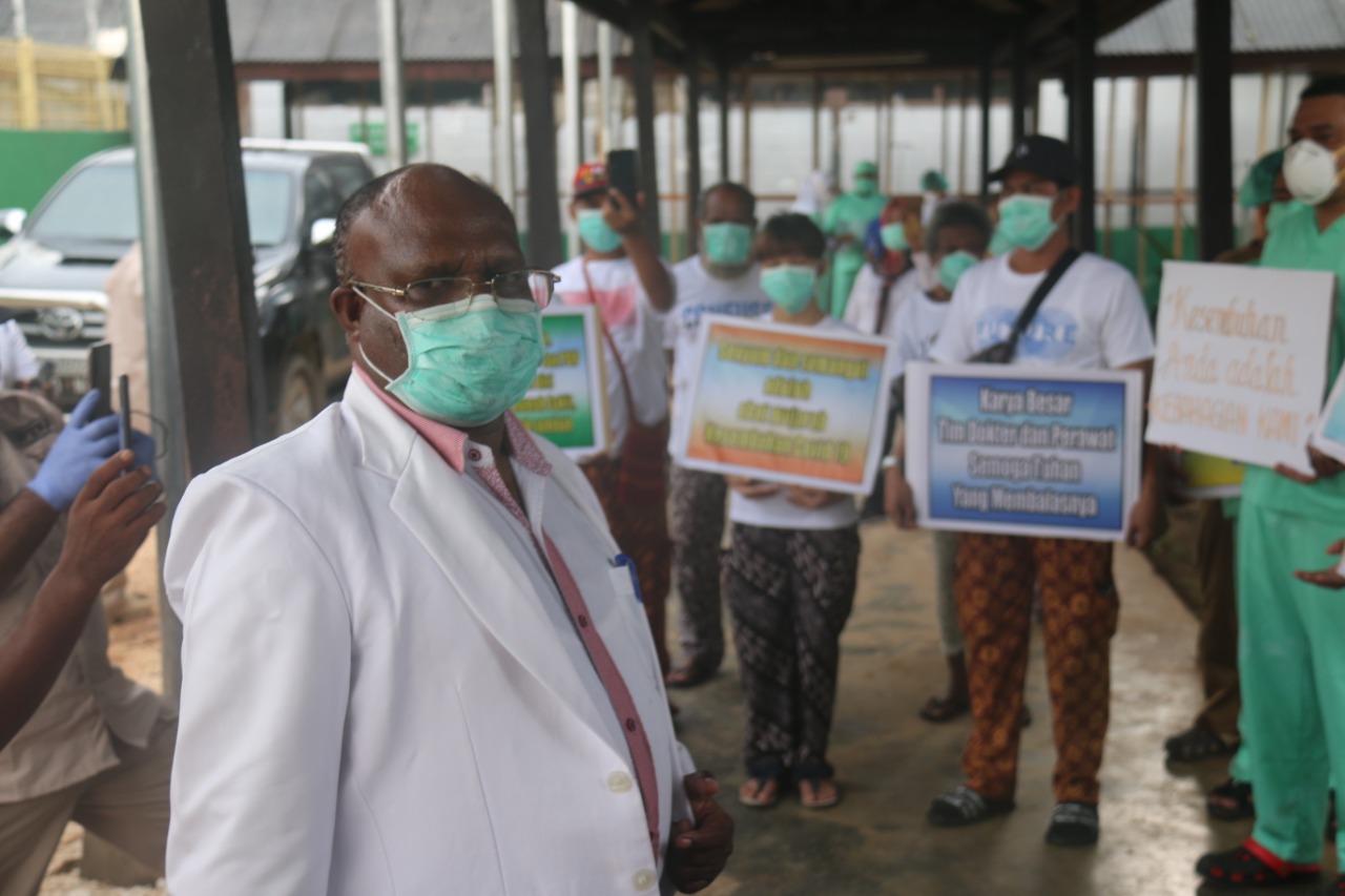 Acara pelepasan pasien ini dilakukan oleh Direksi RSUD Jayapura secara terbuka di lorong menuju ruang isolasi.
