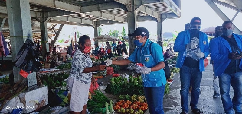 JAYAPURA-Menyambut Hari Ulang Tahun (HUT) Komite Nasional Pemuda Indonesia (KNPI) ke-47 pada 23 Juli 2020, maka Dewan Pimpinan Daerah (DPD) KNPI Kabupaten Jayapura membagikan Alat Pelindung Diri (APD) kepada warga dan mengkampanyekan penerapan protokol kesehatan pada era new normal (tatanan kehidupan baru), di masa pandemi Covid-19.