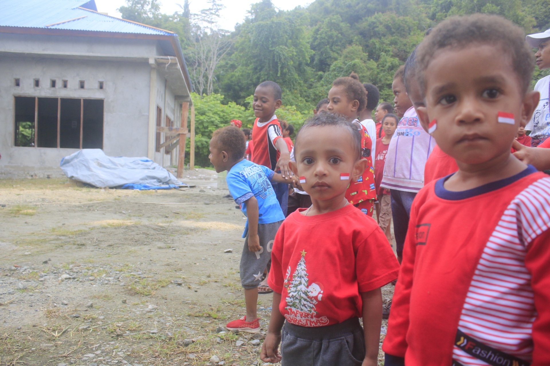Generasi muda Kampung Nafri telah ditanamkan cinta tanah air sejak belia dengan mengikuti lomba jalan santai dalam menyambut HUT ke-78 Kemerdekaan RI pada tahun ini.(Iko Uwais/Bintang Papua)